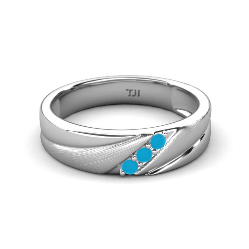 Round Turquoise (2.00 mm) Angled Brushed and Polished Finish Men Three Stone Wedding Band 10K White Gold More Details ...