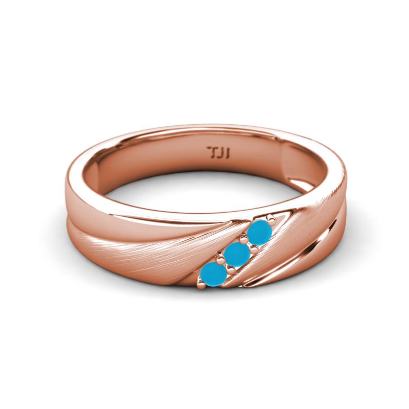 Round Turquoise (2.00 mm) Angled Brushed and Polished Finish Men Three Stone Wedding Band 14K Rose Gold More Details ...