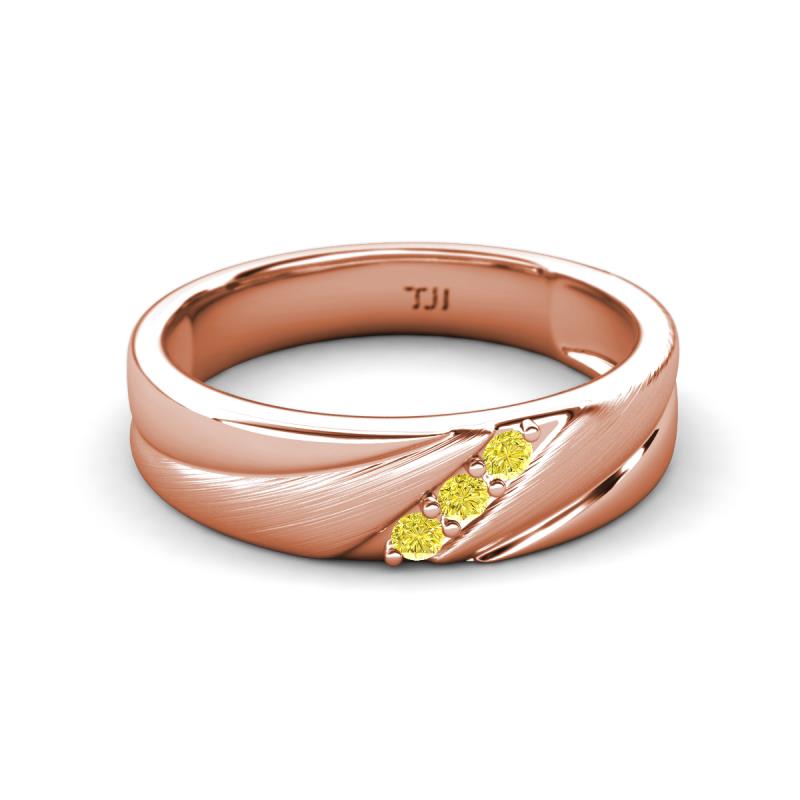 Round Yellow Diamond (2.00 mm) Angled Brushed and Polished Finish Men Three Stone Wedding Band 18K Rose Gold More Details ...