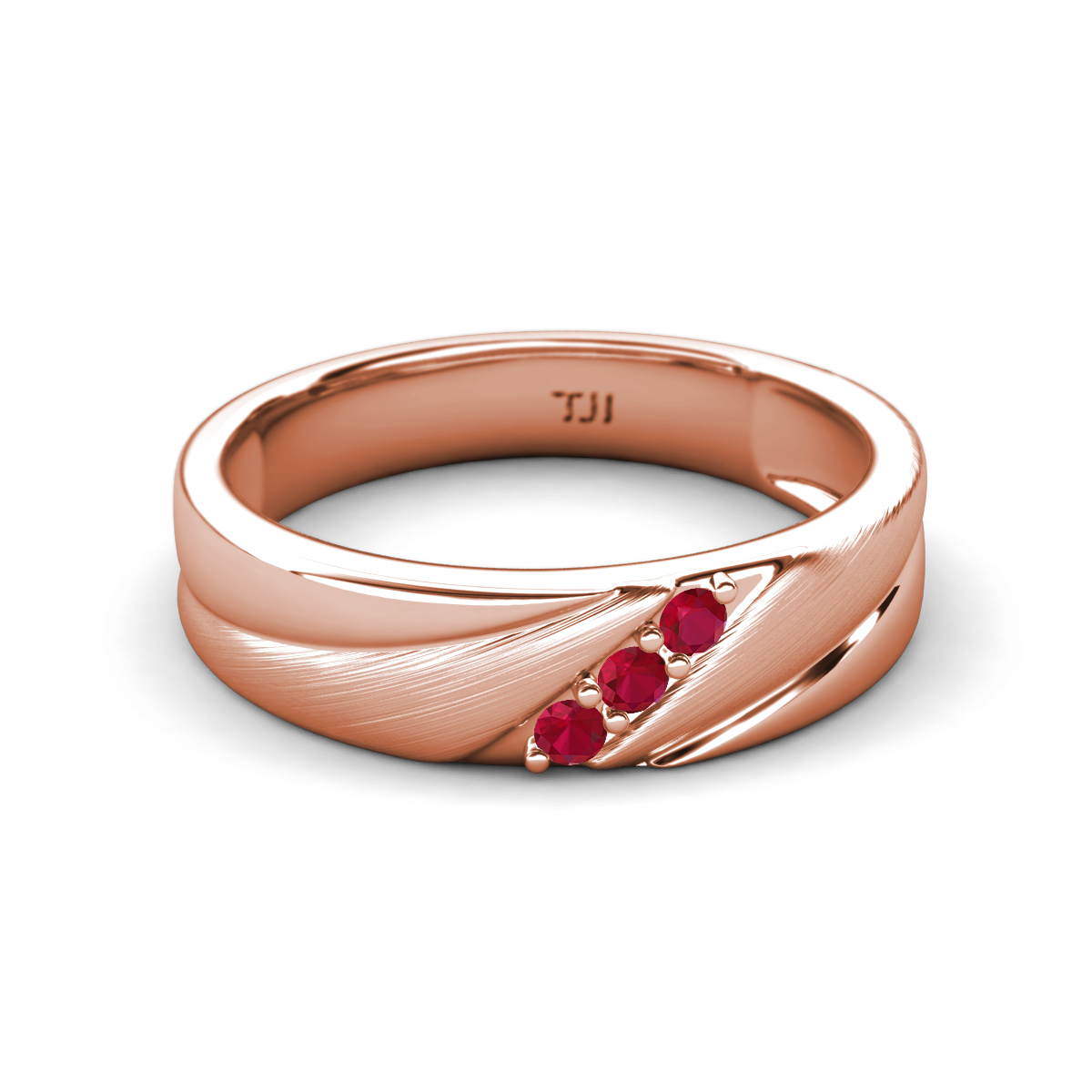 Ruby (2.00 mm) Angled Brushed and Polished Finish Men Three Stone Wedding Band in 18K Rose Gold More Details ...