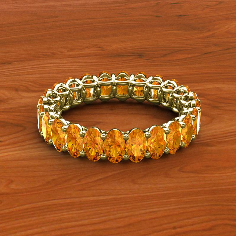 A Jewelry that is designed perfectly to make a truly special and unforgettable gift.This magnificient eternity band follows a series of Oval Shape Citrine that adds up pure glamour and excellence, with side gallery work and shared prong setting it displays a fine contemporary style look. *As per ring size the stone and carat total weight changes.