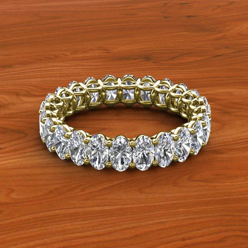 Oval Shape (5x3 mm) Forever Brilliant Moissanite 4.20 ctw Shared Prong with Side Gallery Work Womens Eternity Ring Stackable 14K Yellow Gold More Details ...