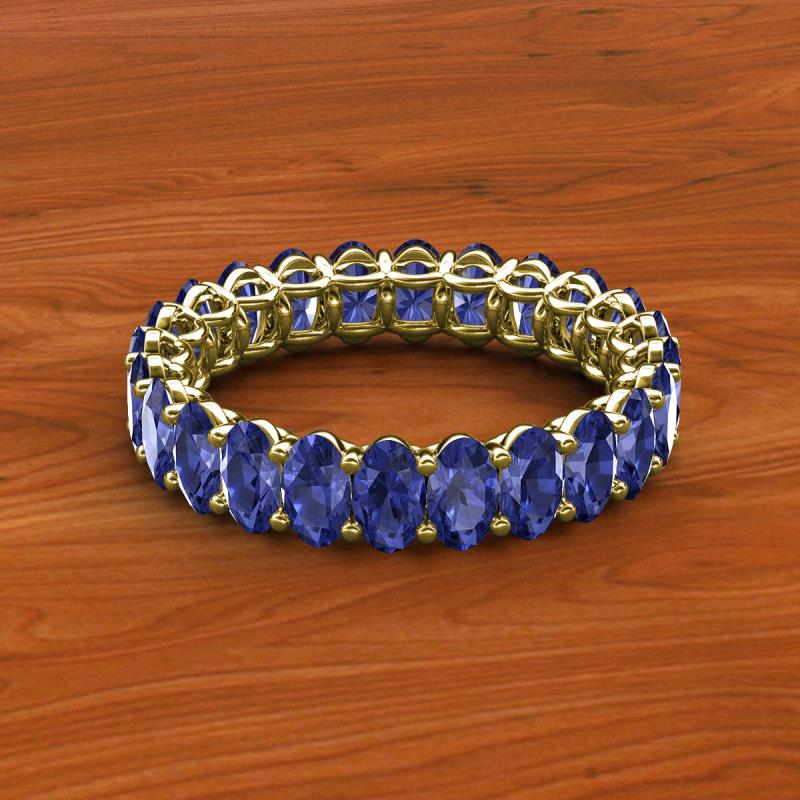 A Jewelry that is designed perfectly to make a truly special and unforgettable gift.This magnificient eternity band follows a series of Oval Shape Iolite that adds up pure glamour and excellence, with side gallery work and shared prong setting it displays a fine contemporary style look. *As per ring size the stone and carat total weight changes.