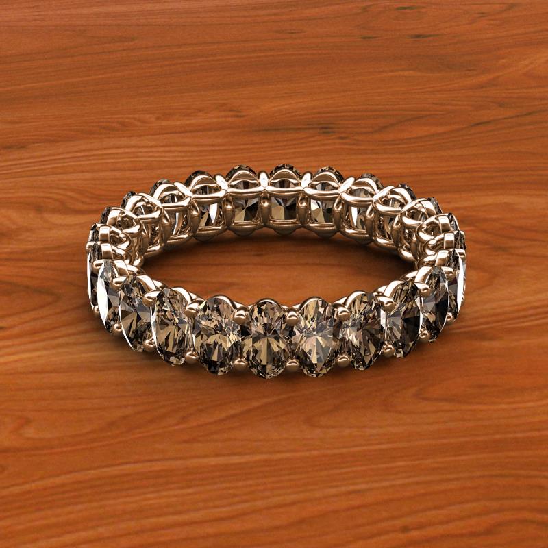 A Jewelry that is designed perfectly to make a truly special and unforgettable gift.This magnificient eternity band follows a series of Oval Shape Smoky Quartz that adds up pure glamour and excellence, with side gallery work and shared prong setting it displays a fine contemporary style look. *As per ring size the stone and carat total weight changes.