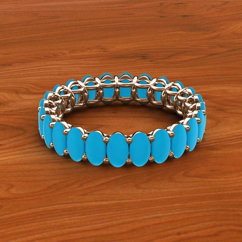 A Jewelry that is designed perfectly to make a truly special and unforgettable gift.This magnificient eternity band follows a series of Oval Shape Turquoise that adds up pure glamour and excellence, with side gallery work and shared prong setting it displays a fine contemporary style look. *As per ring size the stone and carat total weight changes.