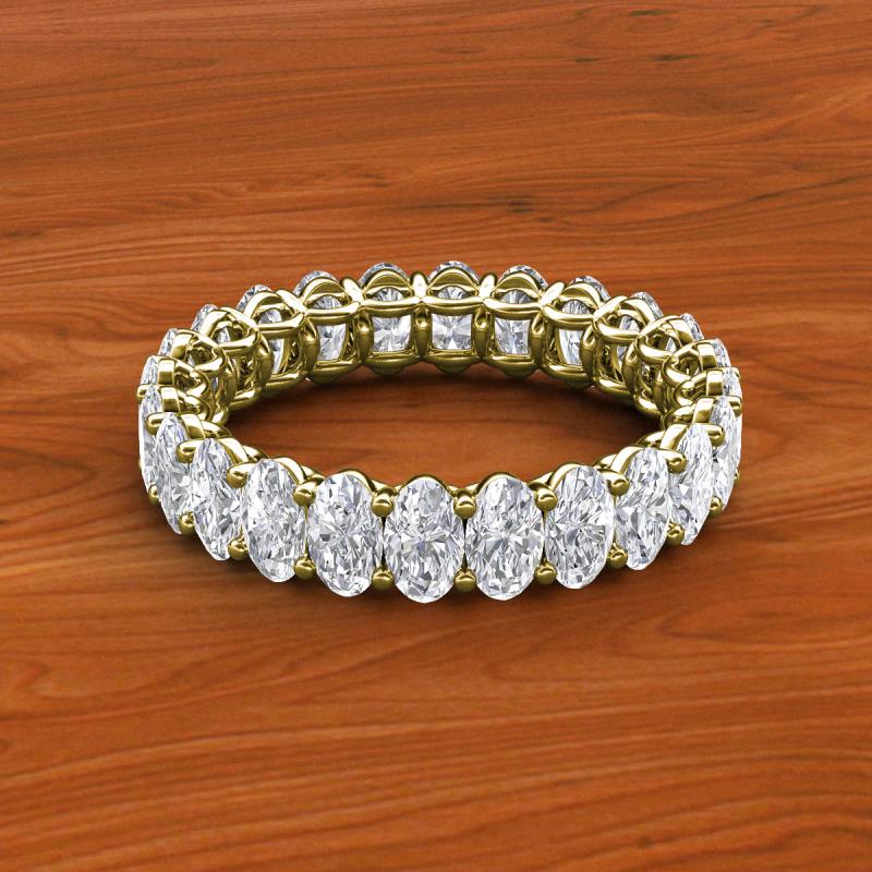 Oval Shape (5x3 mm) White Sapphire 6.72 ctw Shared Prong with Side Gallery Work Womens Eternity Ring Stackable 18K Yellow Gold More Details ...