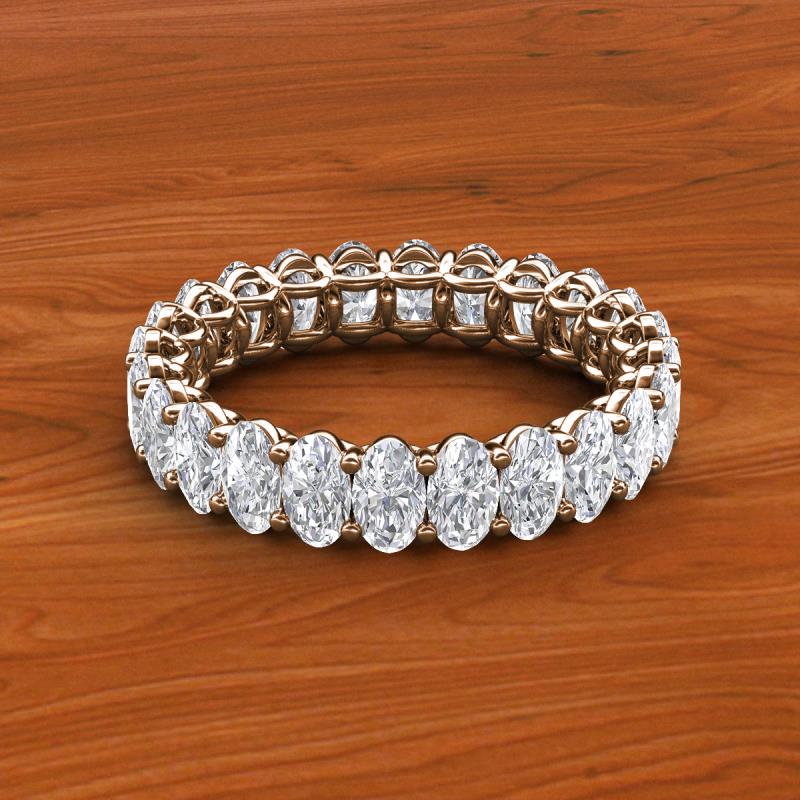 Oval Shape (5x3 mm) White Sapphire 6.72 ctw Shared Prong with Side Gallery Work Womens Eternity Ring Stackable 18K Rose Gold More Details ...