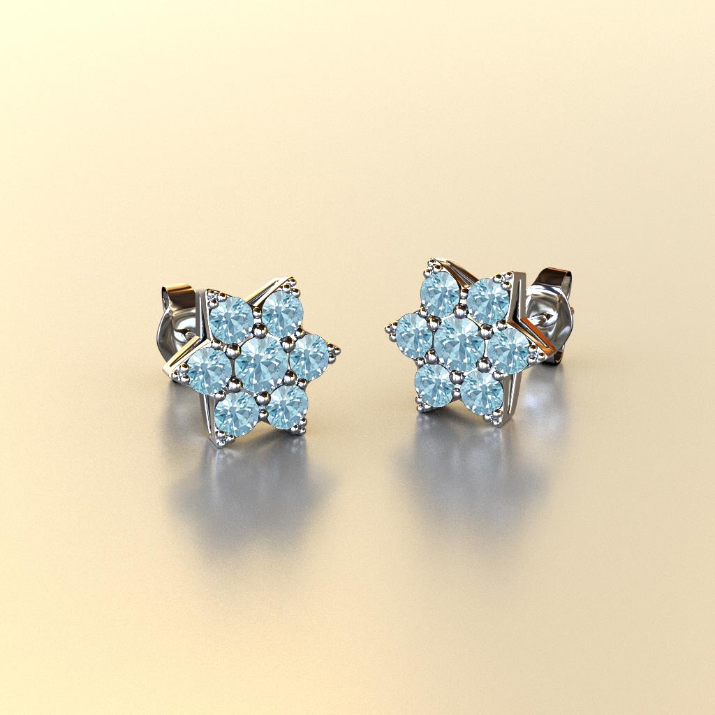 This is a Sparkling Flower Earrings surrounded with Round Aquamarine set using Prong Setting, which promote easy style for a natural beauty.