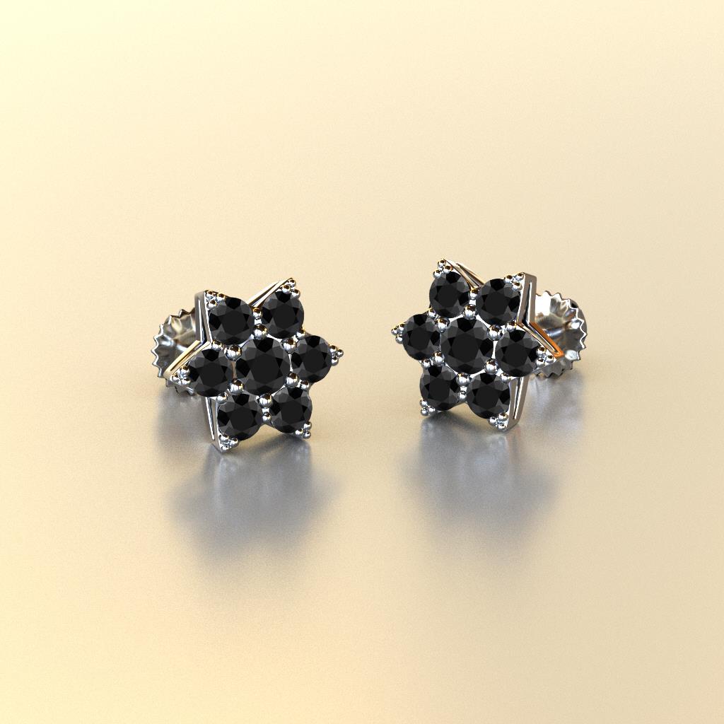This is a Sparkling Flower Earrings surrounded with Round Black Diamond set using Prong Setting, which promote easy style for a natural beauty.