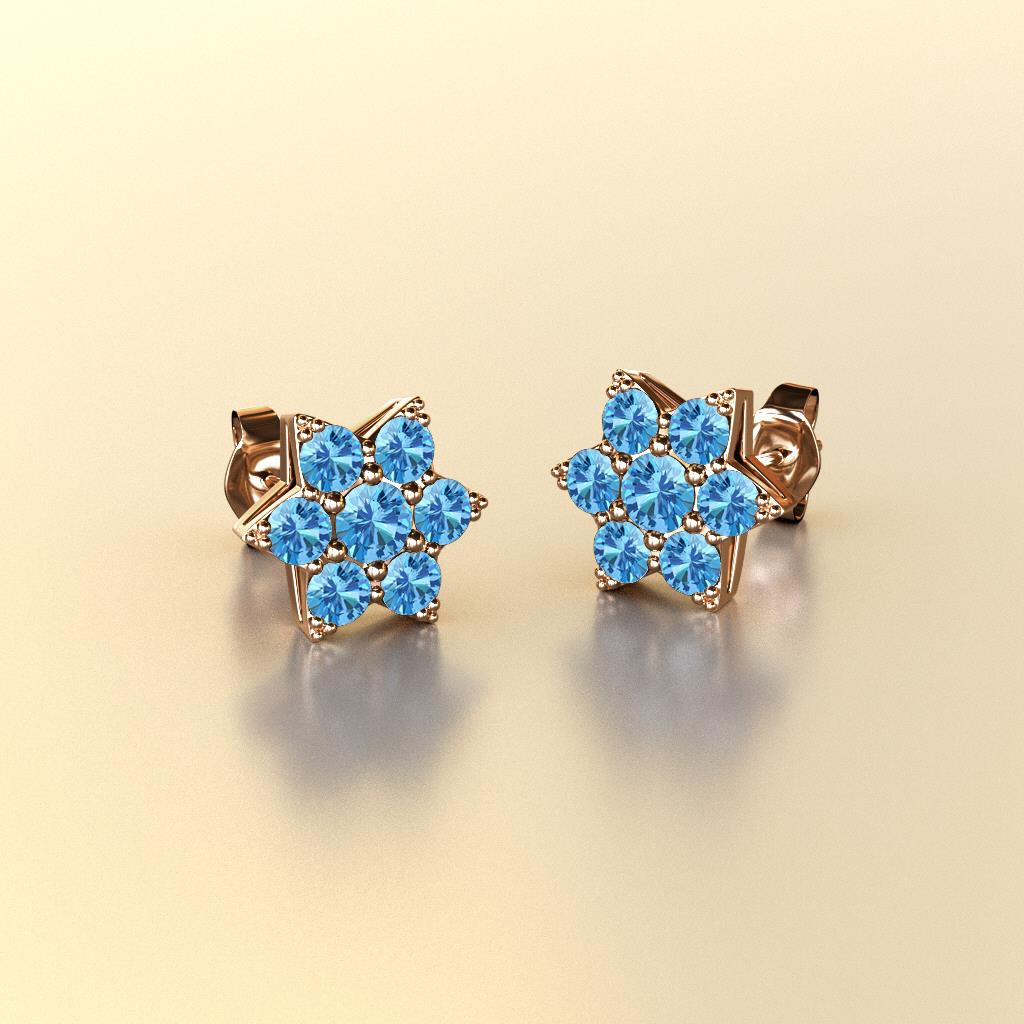 This is a Sparkling Flower Earrings surrounded with Round Blue Topaz set using Prong Setting, which promote easy style for a natural beauty.