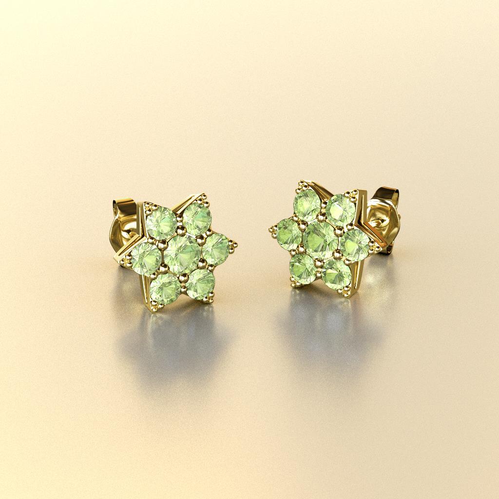 This is a Sparkling Flower Earrings surrounded with Round Peridot set using Prong Setting, which promote easy style for a natural beauty.