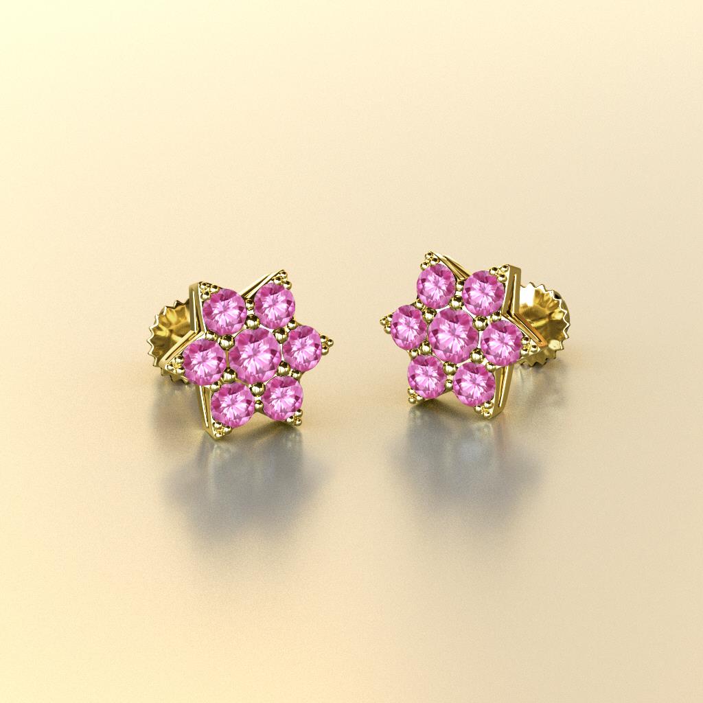 Pink Sapphire Womens Flower Earrings 1/2 ctw 14K Yellow Gold More Details ...
