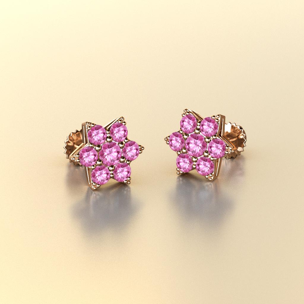 This is a Sparkling Flower Earrings surrounded with Round Pink Sapphire set using Prong Setting, which promote easy style for a natural beauty.