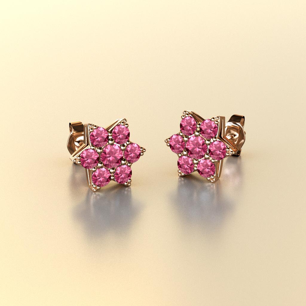This is a Sparkling Flower Earrings surrounded with Round Pink Tourmaline set using Prong Setting, which promote easy style for a natural beauty.