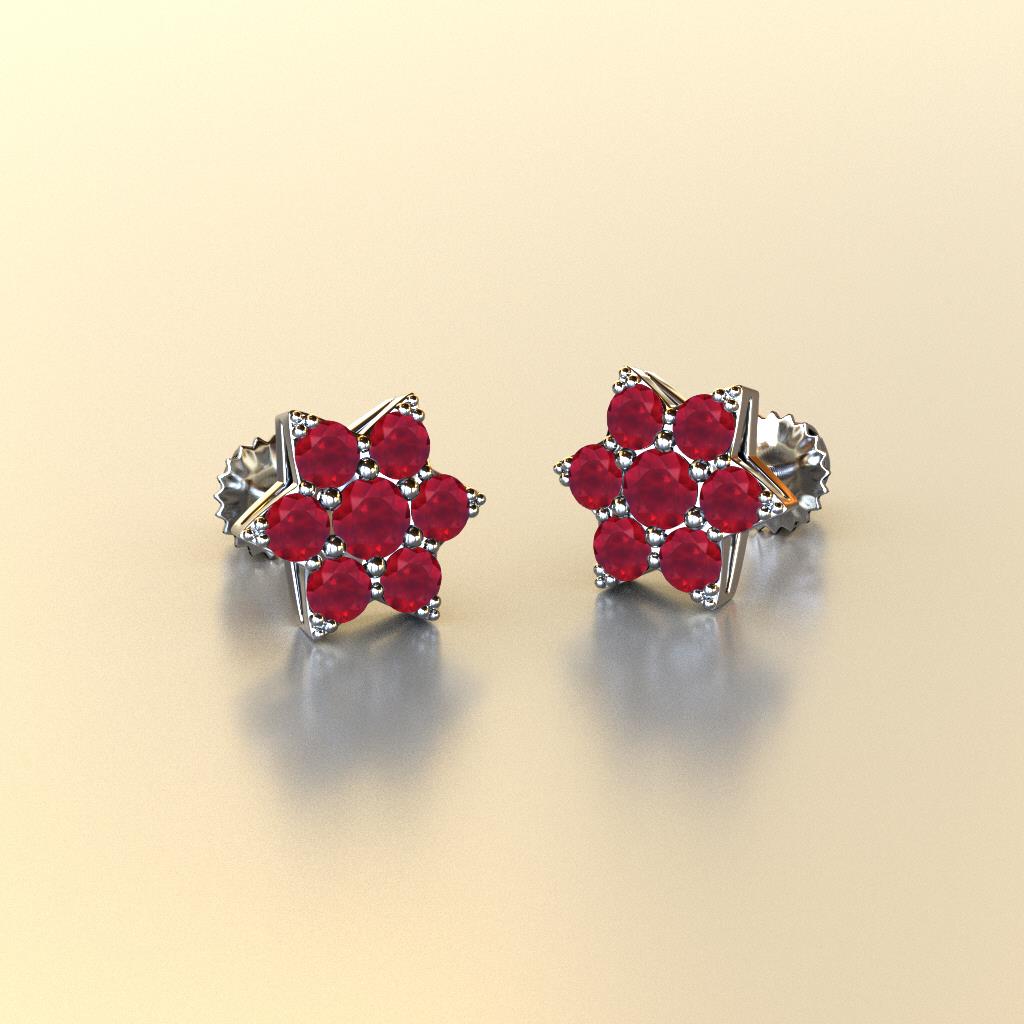 This is a Sparkling Flower Earrings surrounded with Round Ruby set using Prong Setting, which promote easy style for a natural beauty.