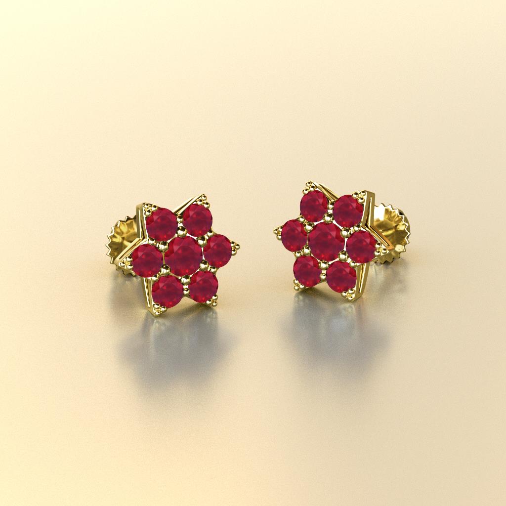 This is a Sparkling Flower Earrings surrounded with Round Ruby set using Prong Setting, which promote easy style for a natural beauty.