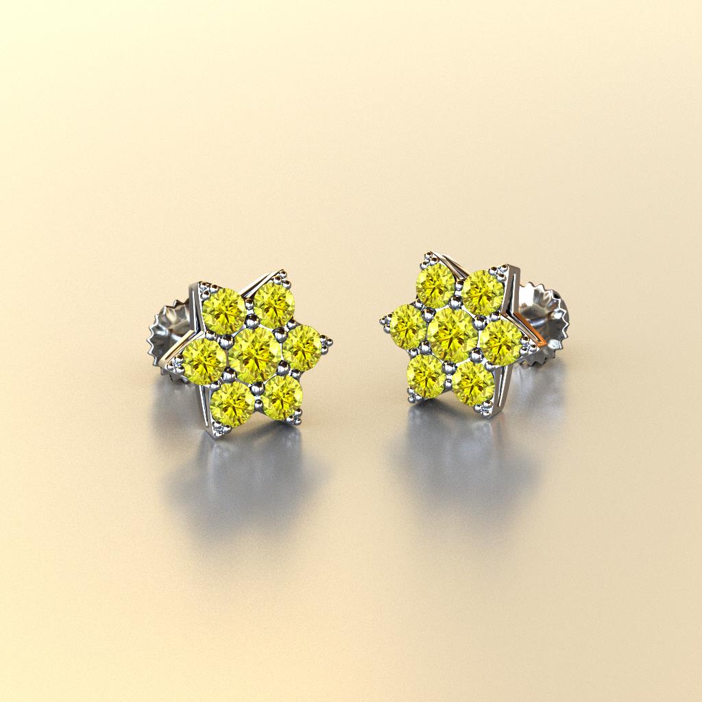 This is a Sparkling Flower Earrings surrounded with Round Yellow Diamond set using Prong Setting, which promote easy style for a natural beauty.