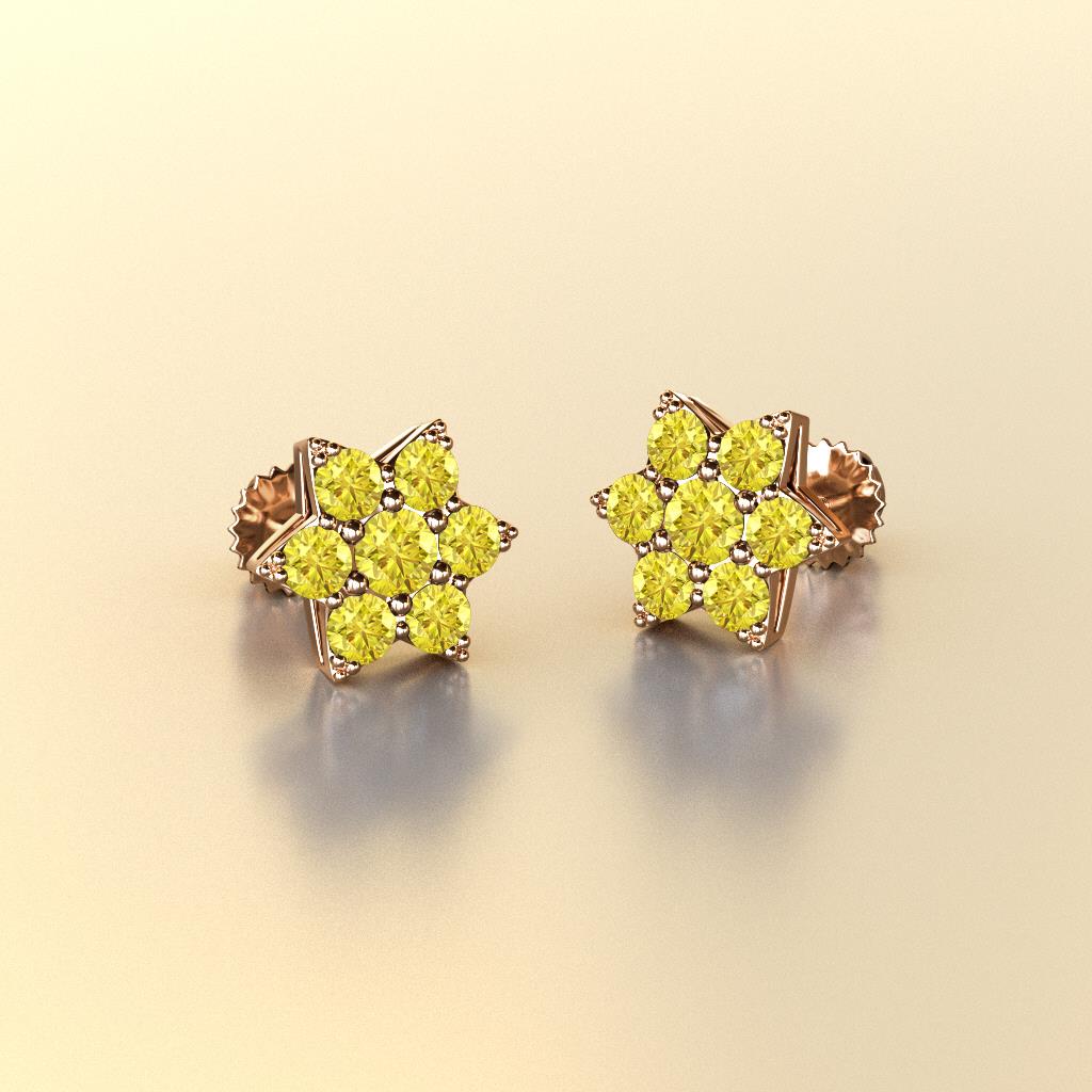 This is a Sparkling Flower Earrings surrounded with Round Yellow Sapphire set using Prong Setting, which promote easy style for a natural beauty.