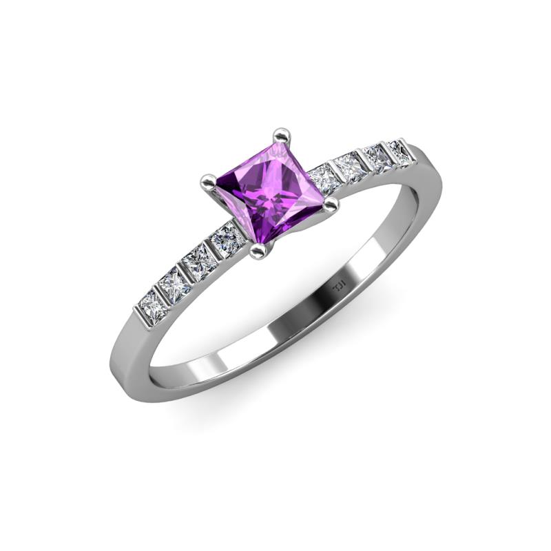 Princess Cut (5 mm) Amethyst and Diamond Womens Engagement Ring 0.79 ctw 18K White Gold More Details ...