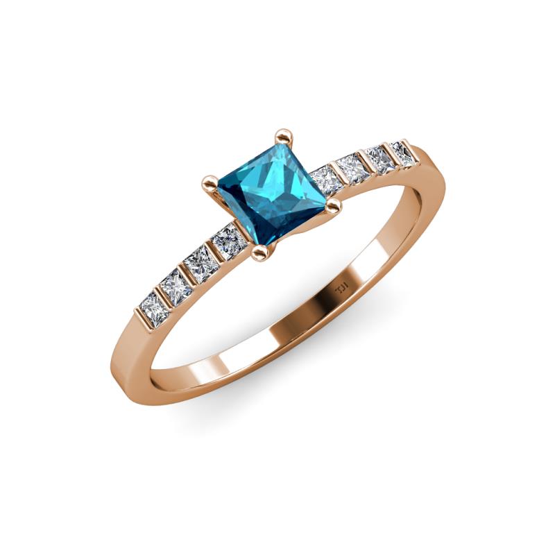 Princess Cut (5 mm) Blue and White Diamond Womens Engagement Ring 0.99 ctw 14K Rose Gold More Details ...