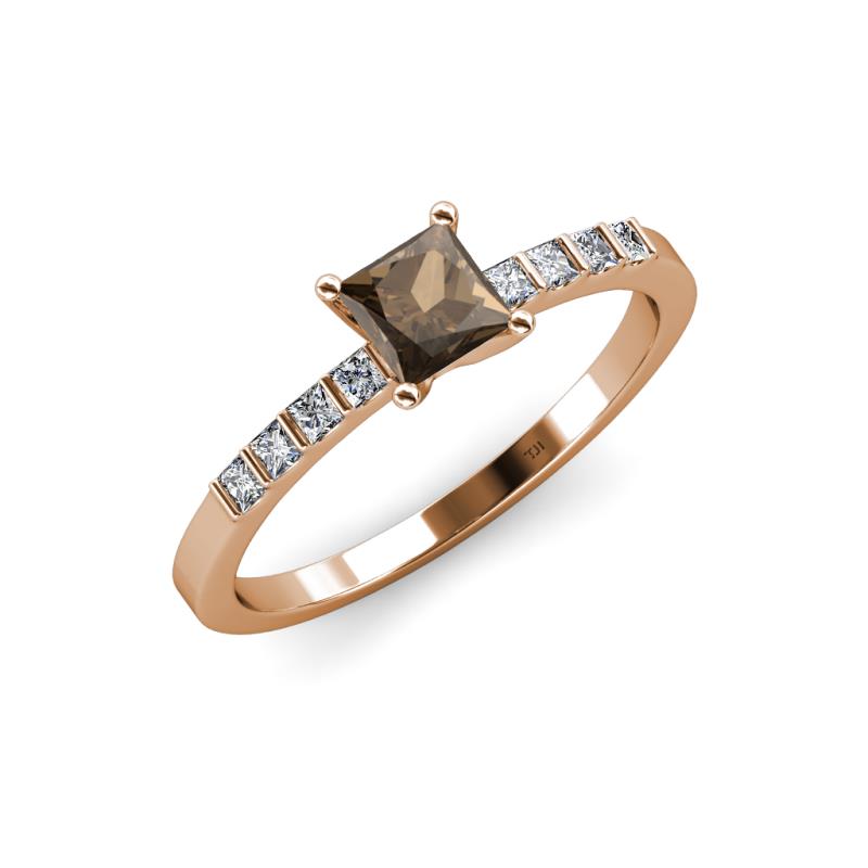 Princess Cut (5 mm) Smoky Quartz and Diamond Womens Engagement Ring 0.80 ctw 18K Rose Gold More Details ...