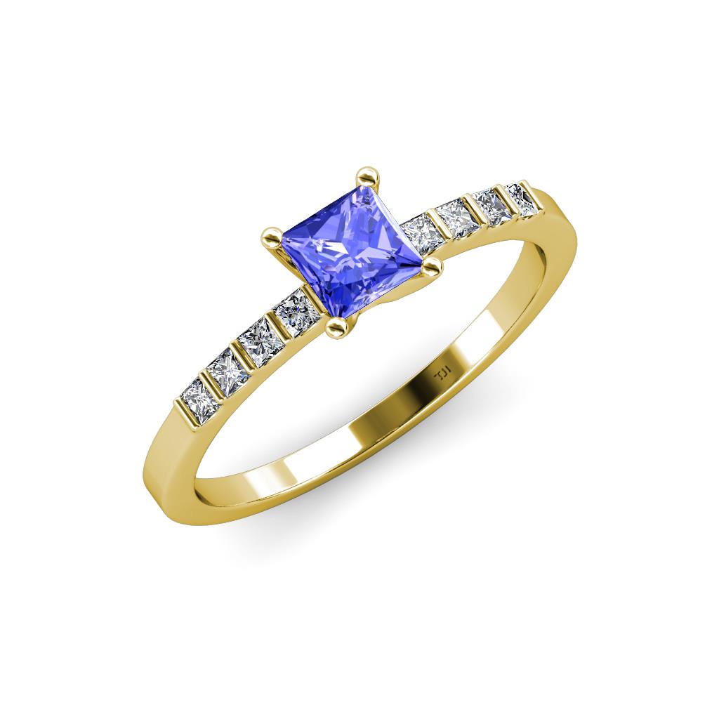 Princess Cut (5 mm) Tanzanite and Diamond Womens Engagement Ring 0.84 ctw 18K Yellow Gold More Details ...