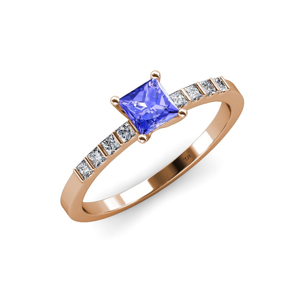 Princess Cut (5 mm) Tanzanite and Diamond Womens Engagement Ring 0.84 ctw 18K Rose Gold More Details ...