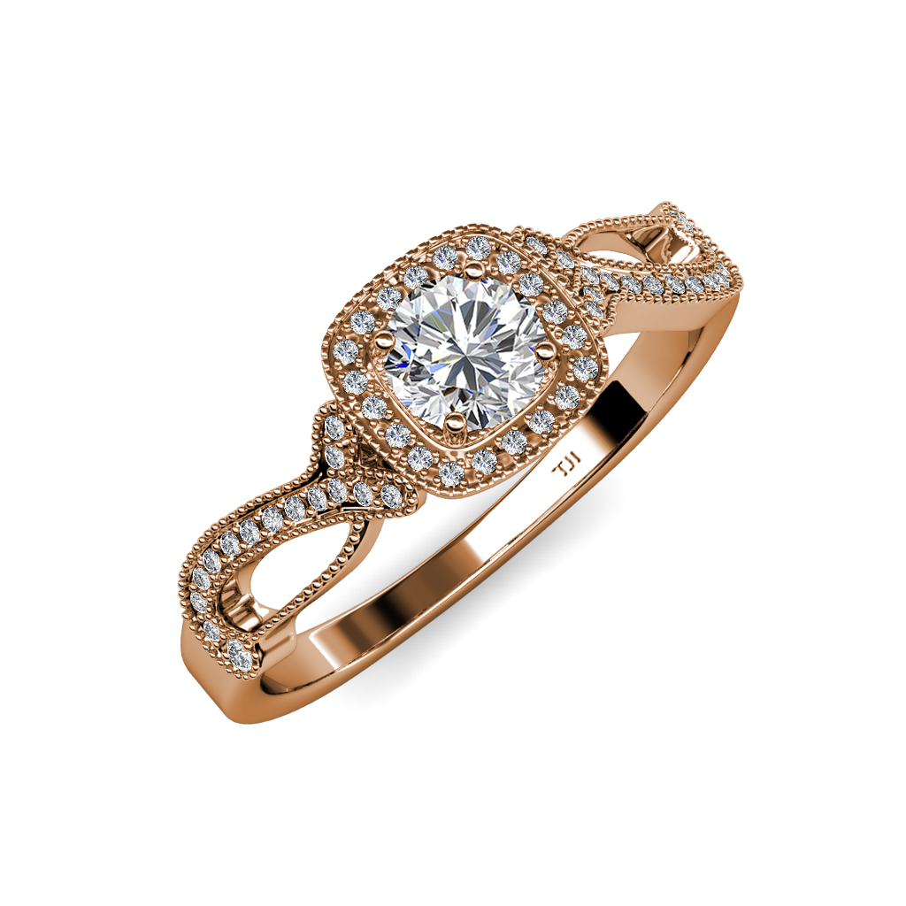 Diamond Semi Mount Womens Swirl Halo Engagement Ring Setting with Milgrain Work 0.25 ctw 14K Rose Gold More Details ...