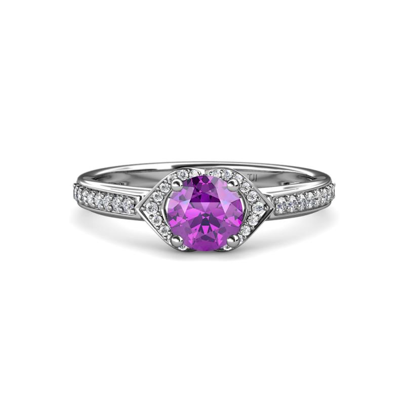 1 3/8 ctw Round Amethyst and Diamond Collar Womens Engagement Ring 14K White Gold More Details ...
