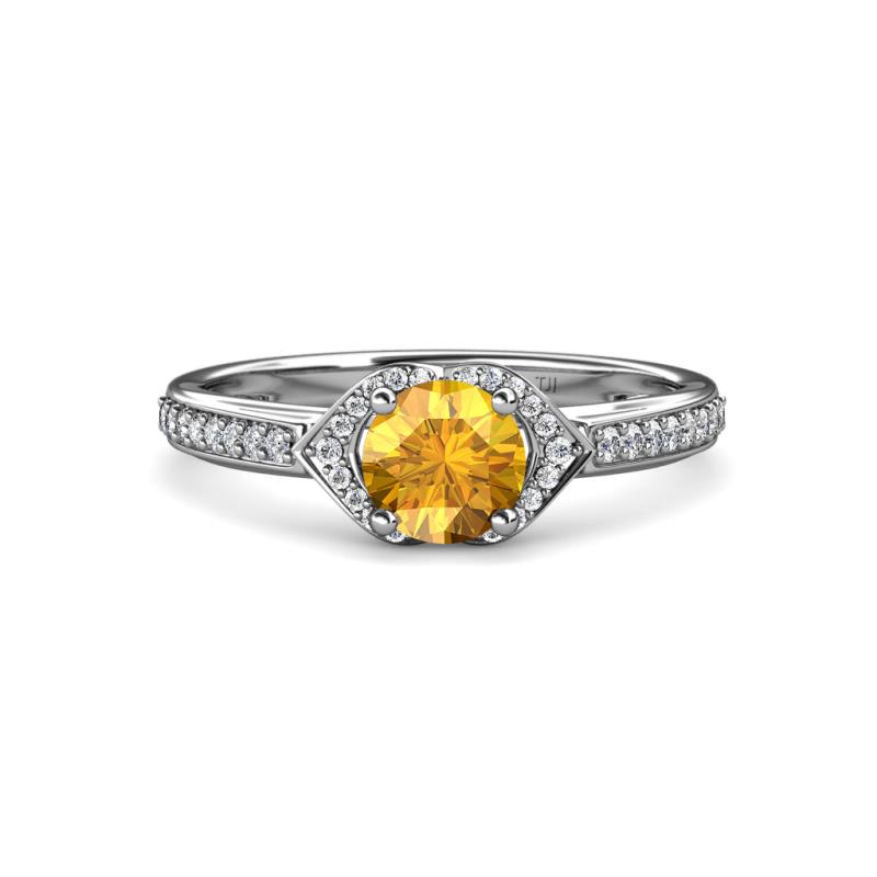 This Glorious Engagement Ring has 4 Prong Round Center Citrine with flared shoulders and single row collar along with single row shank of Pave Set Diamonds is a perfect symbol of heavenly beauty and timeless elegance.
