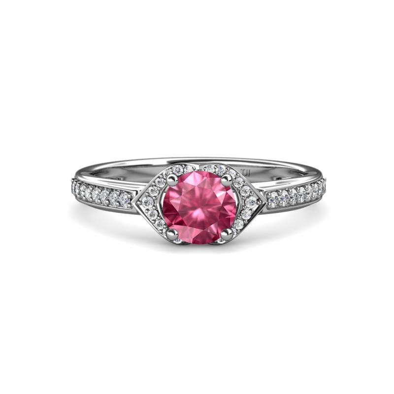 1 3/8 ctw Round Pink Tourmaline and Diamond Collar Womens Engagement Ring 14K White Gold More Details ...