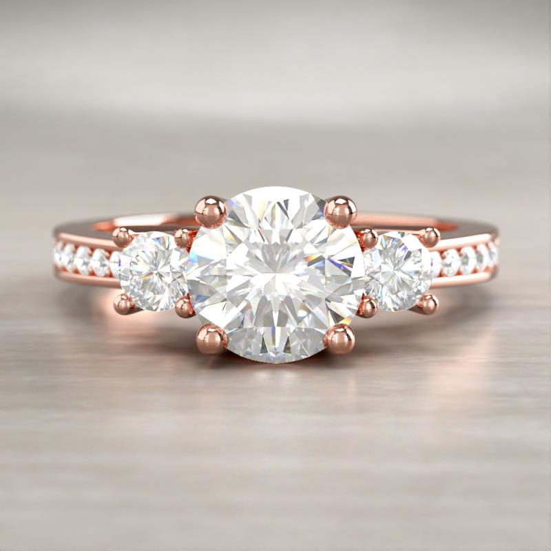 IGI Certified Three Stone Round Lab Grown Diamond and Natural Diamond accented Diamond Engagement Ring in 14K Rose Gold More Details ...