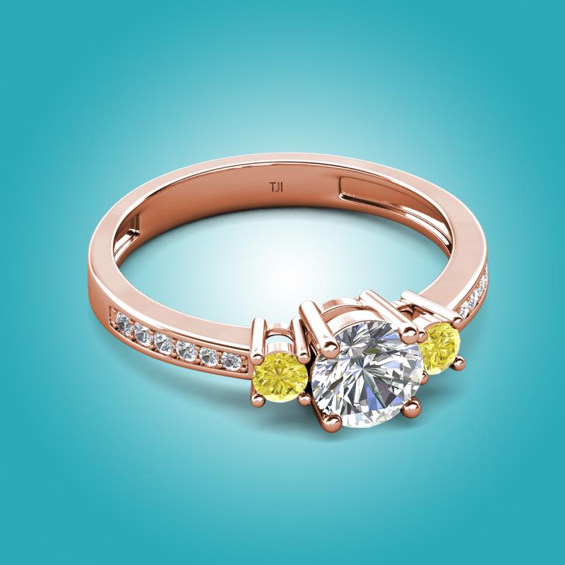 IGI Certified Three Stone Round Lab Grown Diamond and Yellow Diamond accented Diamond Engagement Ring in 14K Rose Gold More Details ...