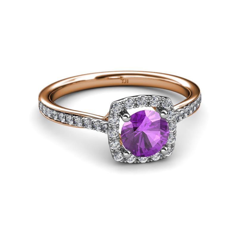 Amethyst and Diamond (SI2-I1, G-H) Two Tone Halo Engagement Ring 1.23 ct tw in 18K White Gold. More Details ...
