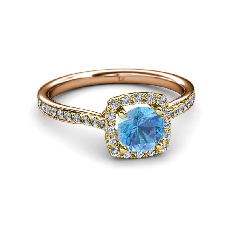Blue Topaz and Diamond (SI2-I1, G-H) Two Tone Halo Engagement Ring 1.31 ct tw in 18K Yellow Gold. More Details ...