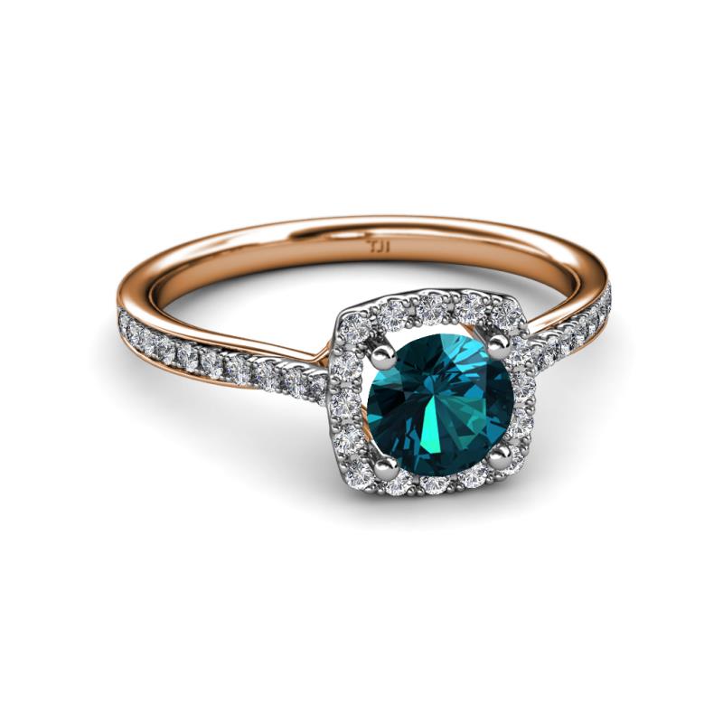 Blue and White Diamond (SI2-I1, G-H) Two Tone Halo Engagement Ring 1.36 ct tw in Platinum. More Details ...