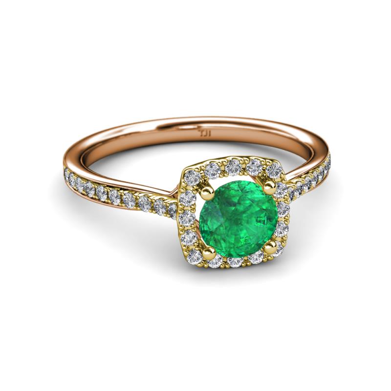 Emerald and Diamond (SI2-I1, G-H) Two Tone Halo Engagement Ring 1.16 ct tw in 18K Yellow Gold. More Details ...