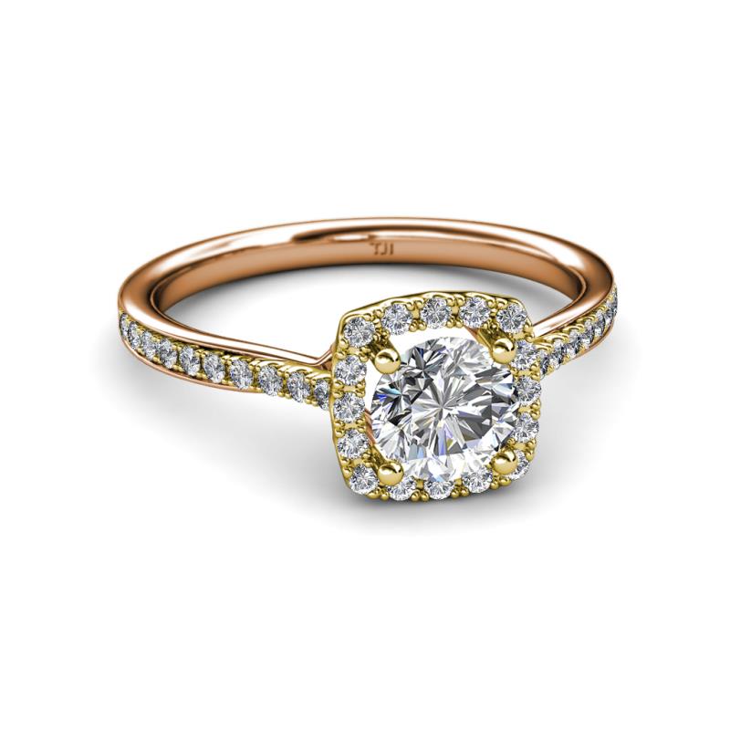 1.36 ctw IGI Certified Lab Grown Diamond Round (6.5 mm) & Natural Diamond Round (1.30 mm) Two Tone Women Halo Engagement Ring in 18K Yellow Gold More Details ...