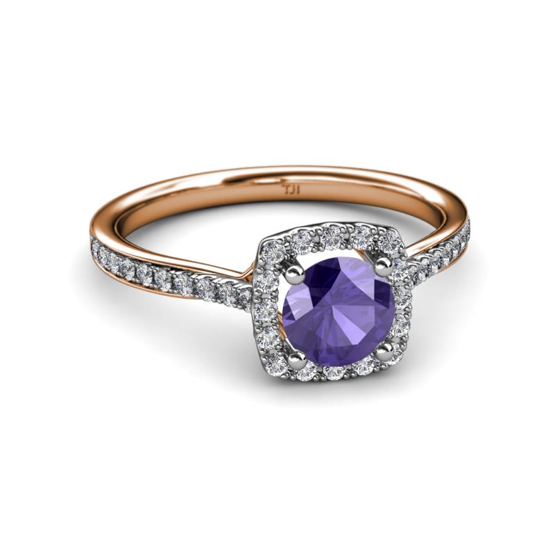 Iolite and Diamond (SI2-I1, G-H) Halo Engagement Ring 1.16 ct tw in Platinum. More Details ...