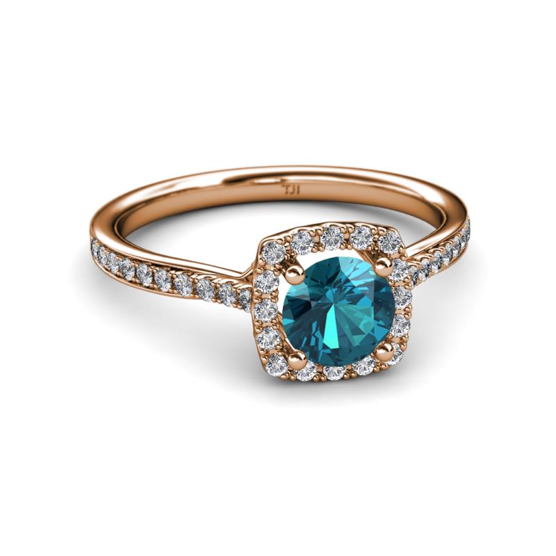 London Blue Topaz and Diamond (SI2-I1, G-H) Halo Engagement Ring 1.31 ct tw in 18K Rose Gold. More Details ...