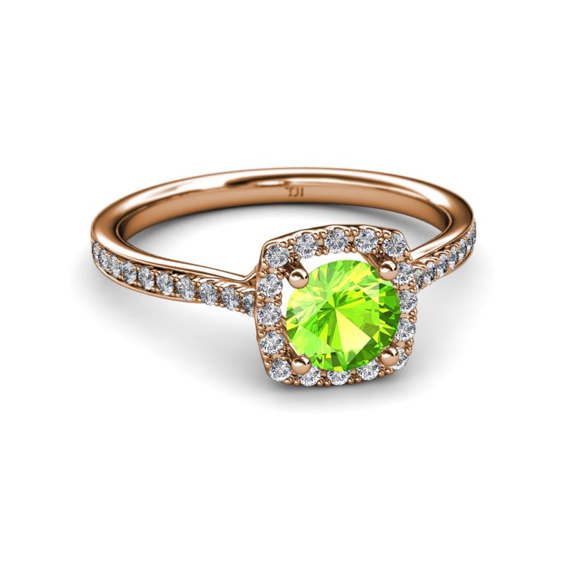 Peridot and Diamond (SI2-I1, G-H) Halo Engagement Ring 1.46 ct tw in 14K Rose Gold. More Details ...