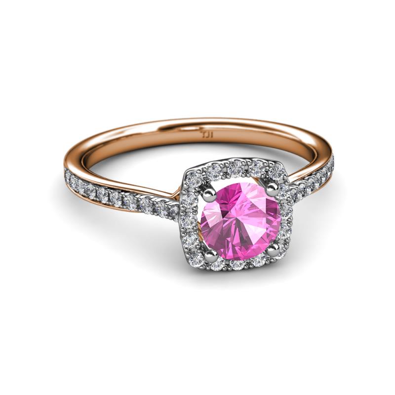 Pink Sapphire and Diamond (SI2-I1, G-H) Two Tone Halo Engagement Ring 1.31 ct tw in Platinum. More Details ...