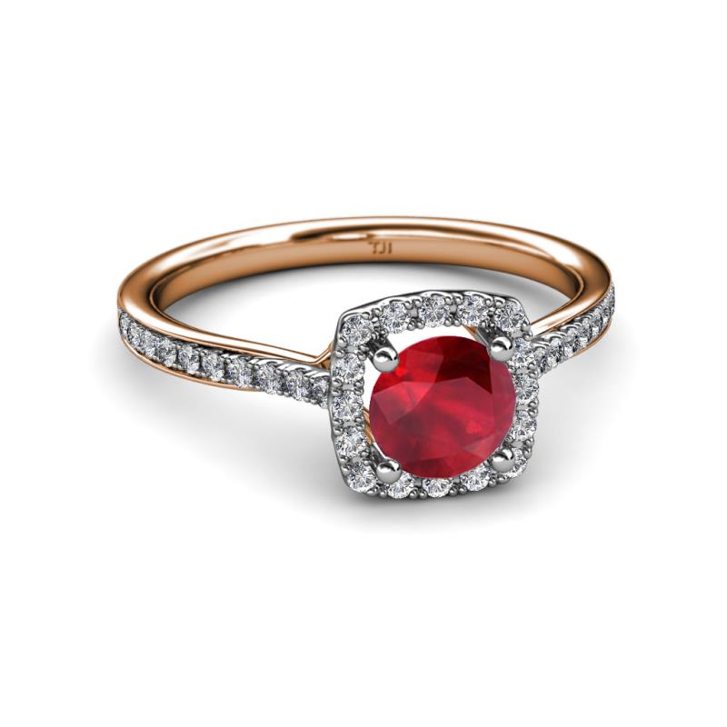 Ruby and Diamond (SI2-I1, G-H) Two Tone Halo Engagement Ring 1.31 ct tw in Platinum. More Details ...