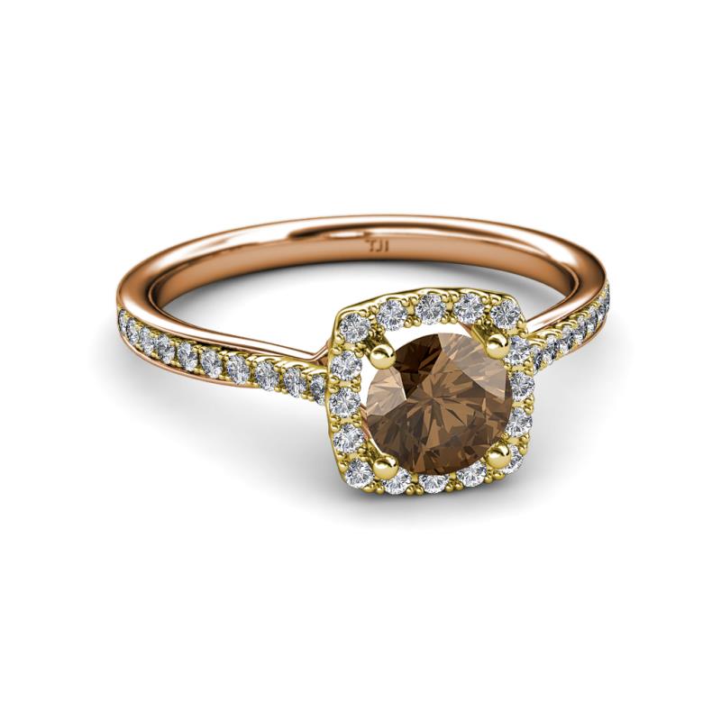 Smoky Quartz and Diamond (SI2-I1, G-H) Two Tone Halo Engagement Ring 1.36 ct tw in 18K Yellow Gold. More Details ...
