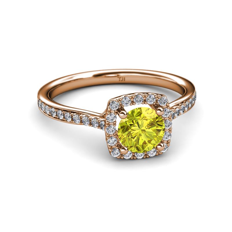 Yellow and White Diamond (SI2-I1, G-H) Halo Engagement Ring 1.36 ct tw in 14K Rose Gold. More Details ...