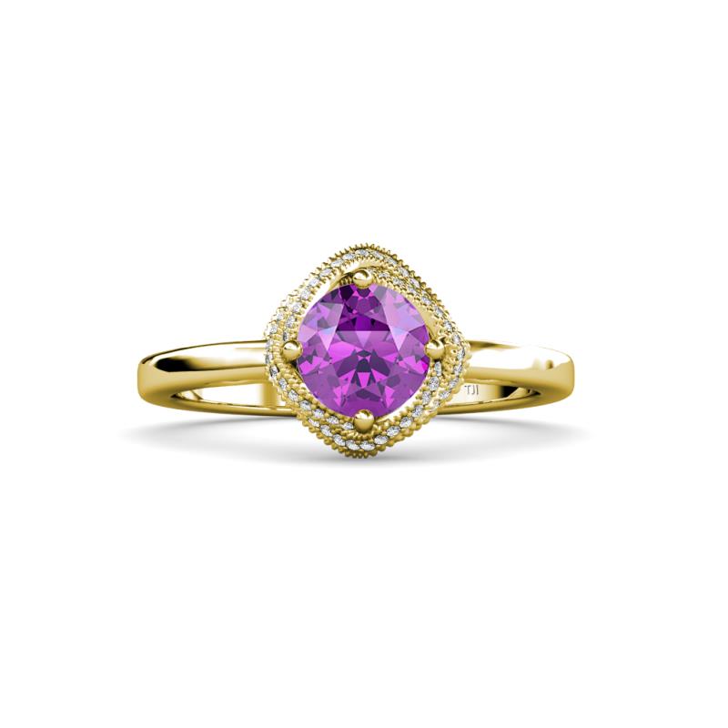 1 ctw Round Amethyst and Diamond Milgrain Womens Halo Engagement Ring 14K Yellow Gold More Details ...