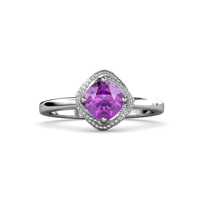 1 ctw Round Amethyst and Diamond Milgrain Womens Halo Engagement Ring 18K White Gold More Details ...