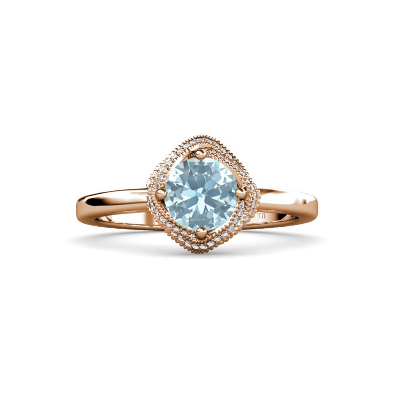 1 ctw Round Aquamarine and Diamond Milgrain Womens Halo Engagement Ring 14K Rose Gold More Details ...