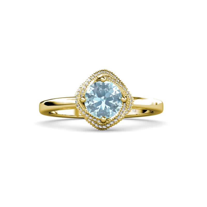 1 ctw Round Aquamarine and Diamond Milgrain Womens Halo Engagement Ring 18K Yellow Gold More Details ...