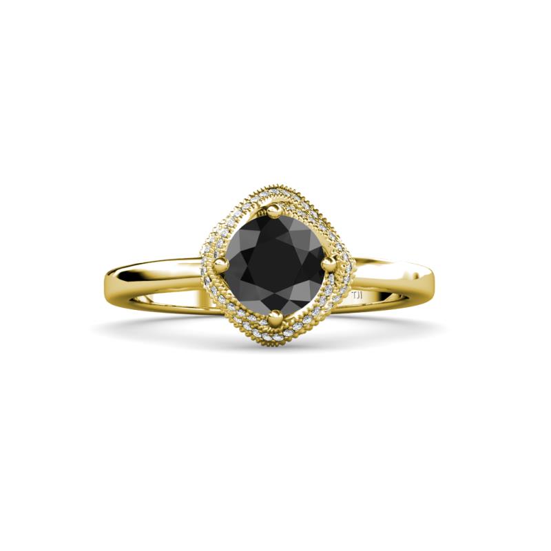 1 1/4 ctw Round Black and White Diamond Milgrain Womens Halo Engagement Ring 18K Yellow Gold More Details ...